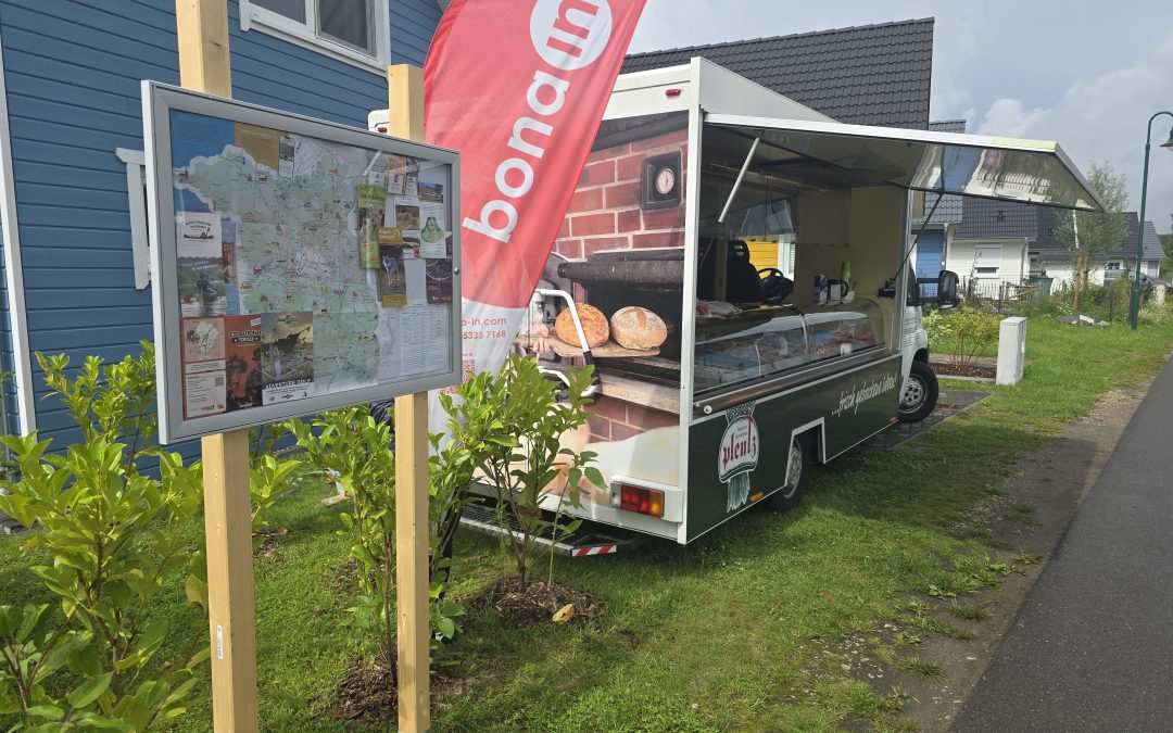 Im Hafendorf Zerpenschleuse der bona in Bäckereiwagen der Bäckerei Plentz. Einem Betrieb aus der Region. Klassisches Handwerk in der Nacht für den Morgen. Keine Industrieware. Alles Handarbeit. Saisonale Kuchenstücke. Diverse Sorten Brötchen. Brote. Übrigens, für Champagnerbrote wird in der Herstellung auf das leckere Getränk verzichtet. Vielmehr kommt das verwendete Korn aus der Champagne.
